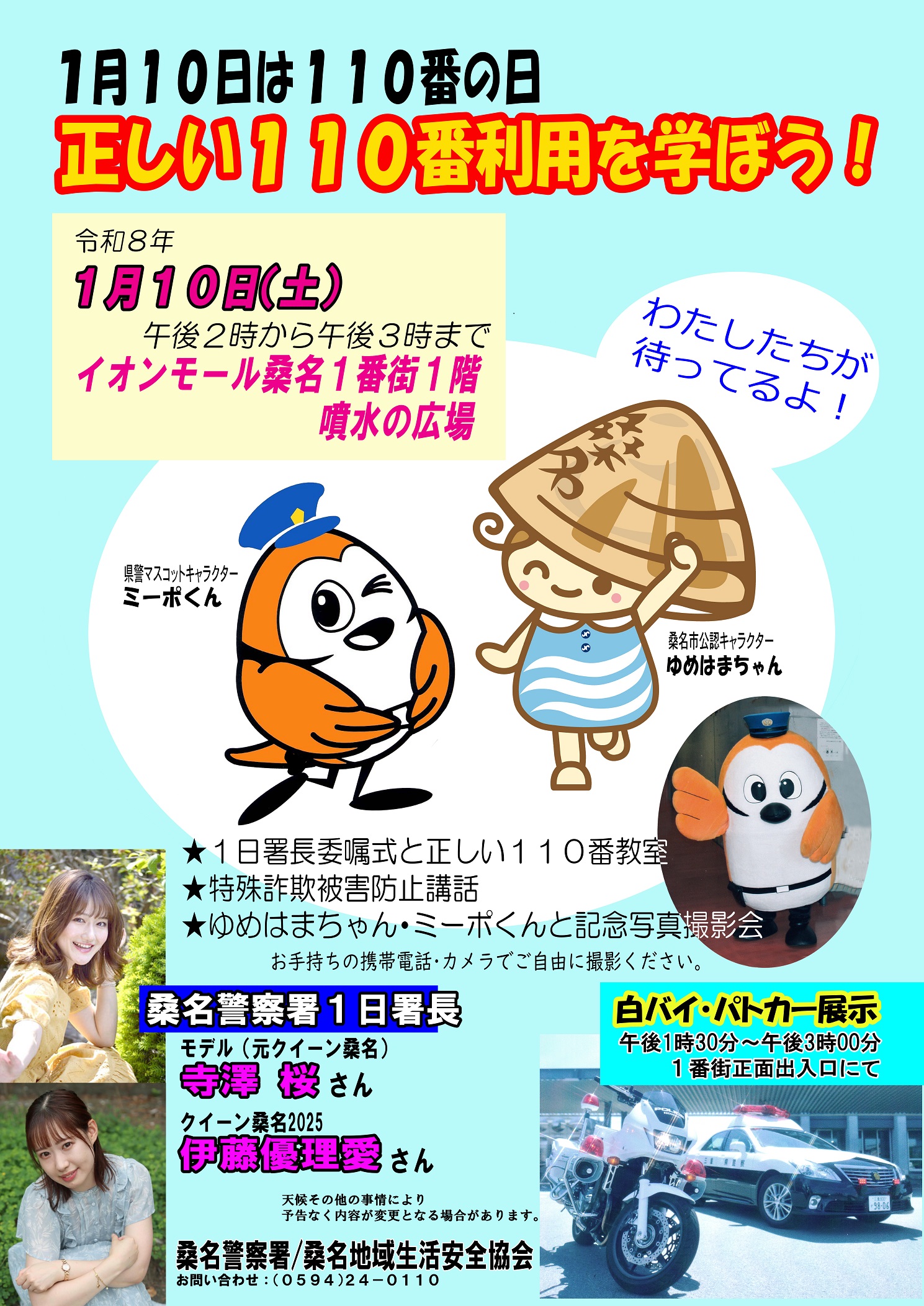 時間:14:00~15:00 場所:イオンモール桑名1番街1階 噴水の広場