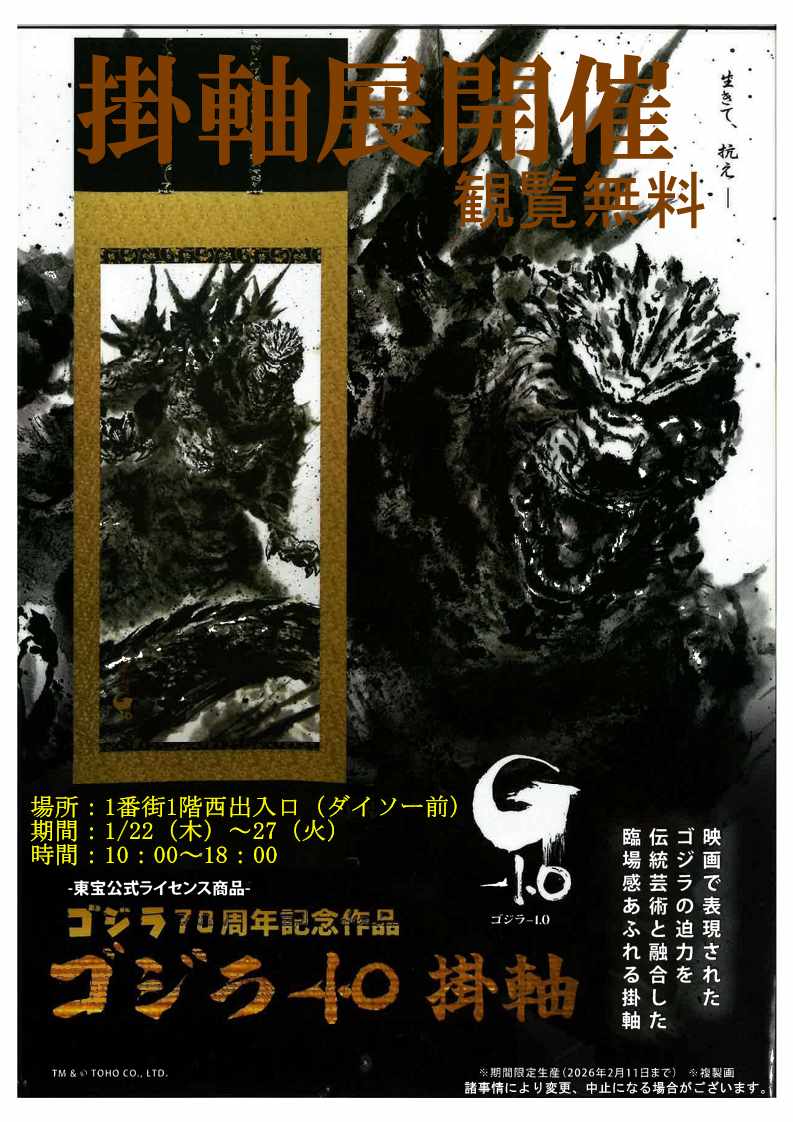 映画で表現されたゴジラの迫力を伝統芸能と融合した臨場感あふれる掛軸